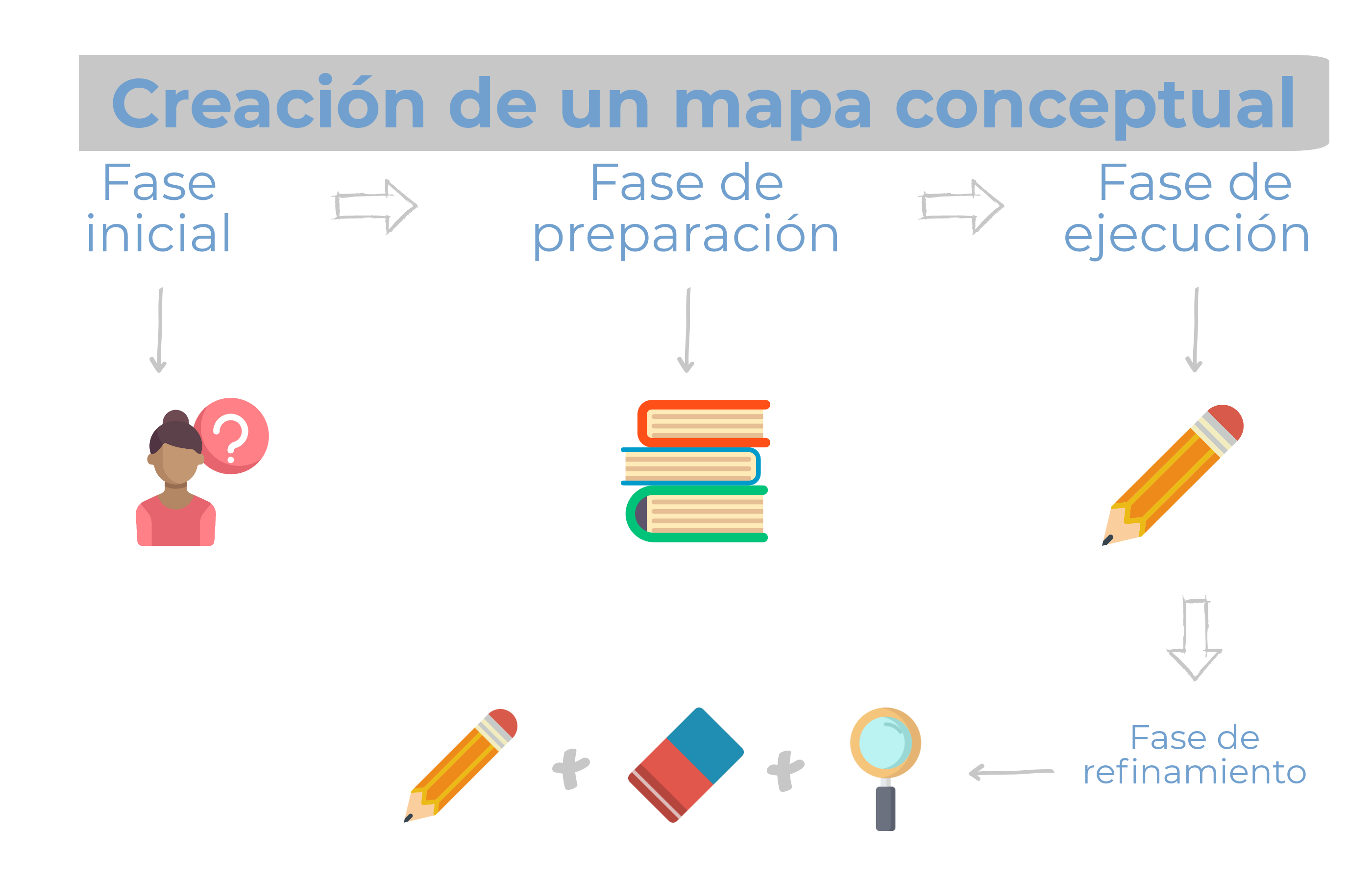 Para crear un mapa conceptual correctamente, debes seguir las siguientes fases: