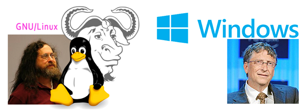Richard M. Stallman, es el padre del movimiento software libre y cofundador del sistema operativo Gnu/Linux, rival de Windows, cuyo fundador fue Bill Gates, estandarte del sistema operativo propietario y comercial.